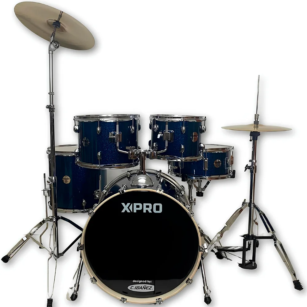 Bateria X-Pro BAT420 Fusion Stage Blue Sparkle Bumbo de 20 C/ Banco e Pratos