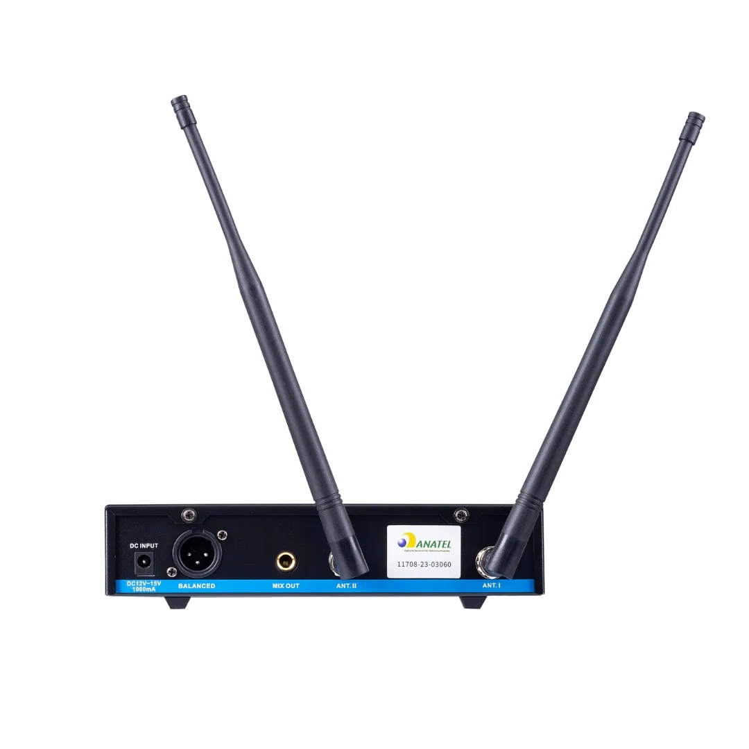 - Sistema de Antenas True Diversity: Assegura uma transmissão estável e livre de interferências, proporcionando segurança durante as apresentações.